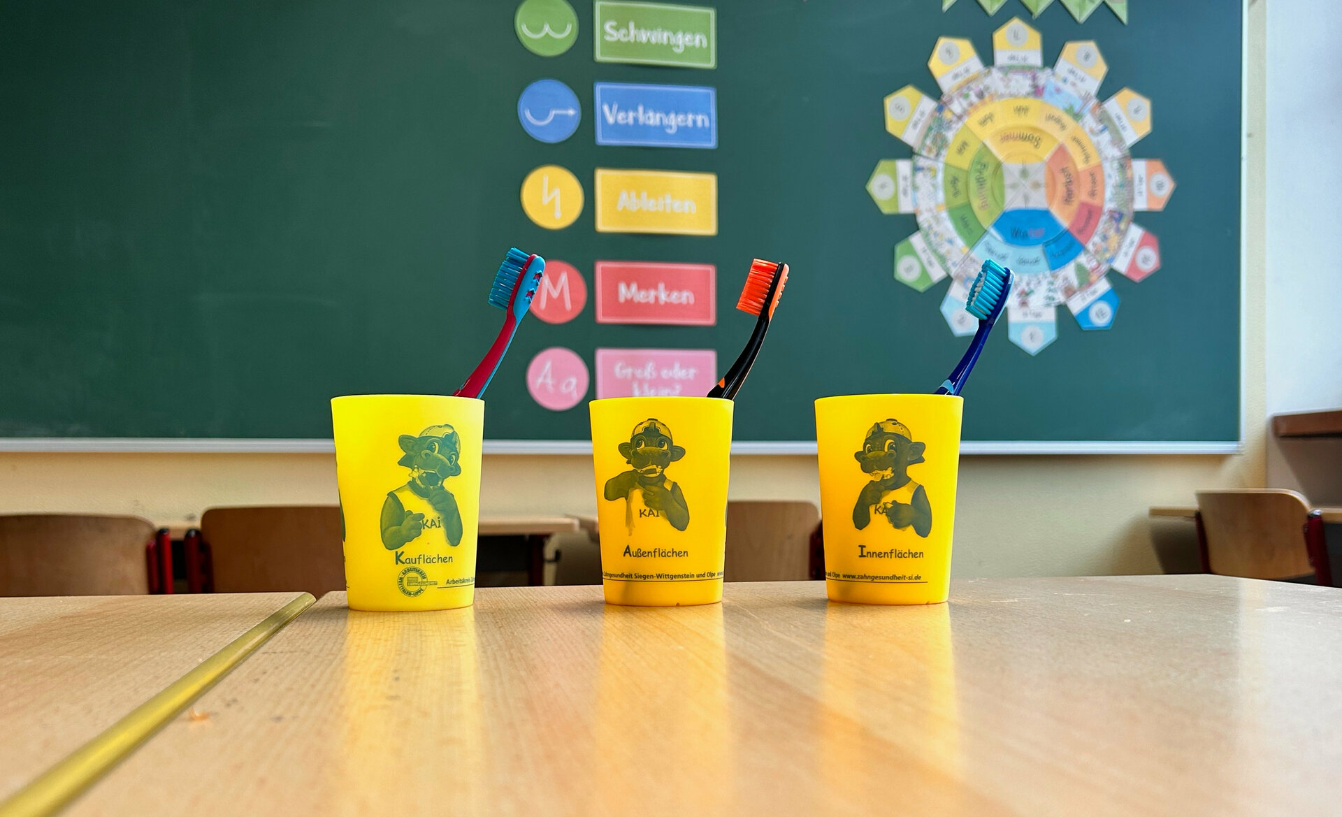 So ist Schule mit Biss entstanden – ein Präventionsprogramm, das Grundschulen unterstützt, Zahngesundheit und gesunde Ernährung im Schulalltag und im Offenen Ganztag umzusetzen. Hierbei bilden zahngesunde Getränke, das richtige Schulfrühstück und das gemeinsame Zähneputzen nach dem Mittagessen die Kernelemente. Auf diese Weise werden Kinder von der Kita bis zum Ende der Grundschulzeit kontinuierlich in gesundheitsförderndem Verhalten gestärkt.